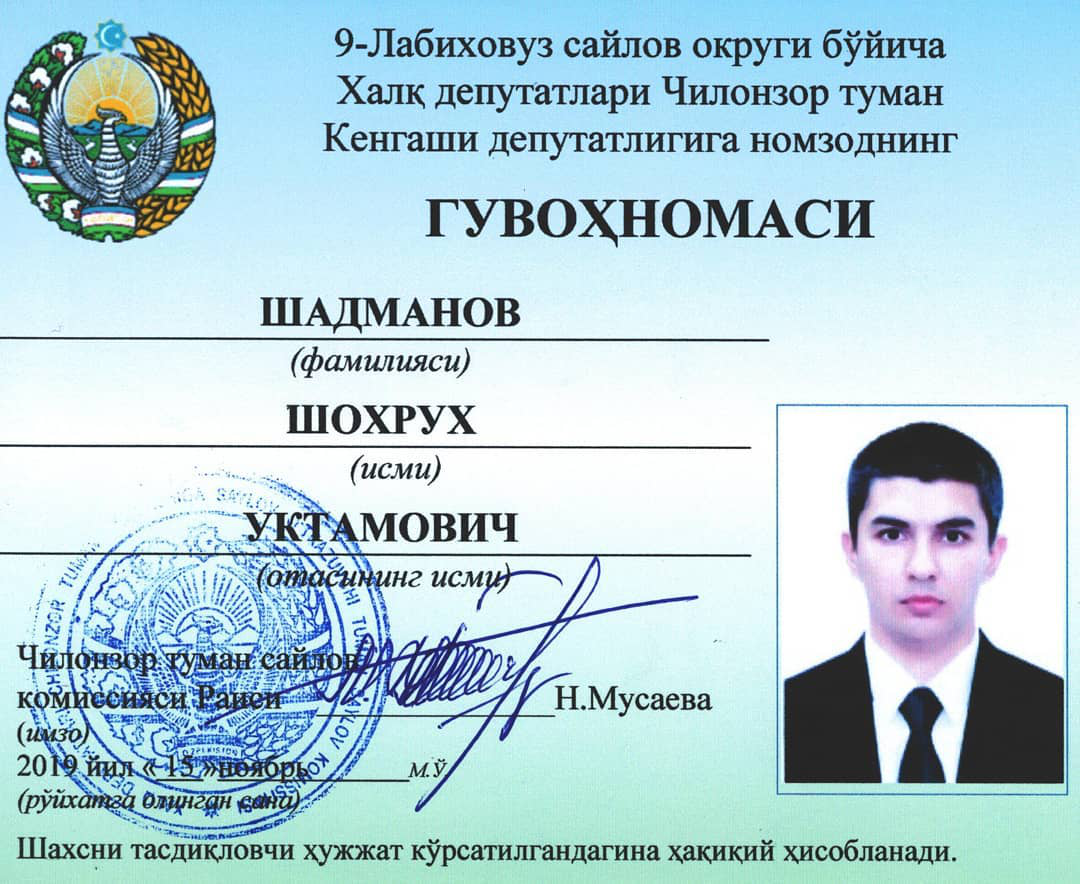 Рэпер Шохрух намерен баллотироваться от партии «УзЛиДеп» в Кенгаш народных депутатов девятого округа «Лябиховуз» Чиланзарского района, сообщается на странице артиста в Instagram.