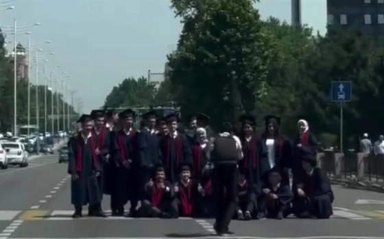 Недавно в соцсетях распространился видеоролик с выпускниками вуза, фотографировавшимися на пешеходном переходе в Ташкенте.