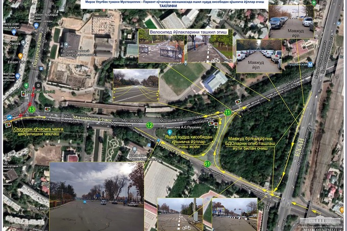 Для устранения этой проблемы и повышения удобства были разработаны соответствующие решения. В частности, планируется организовать разворот по улице Мустакиллик напротив хокимията Мирзо-Улугбекского района, поворот с улицы Паркент на улицу Мустакиллик, а также съезд с Малой кольцевой на улицу Паркент.