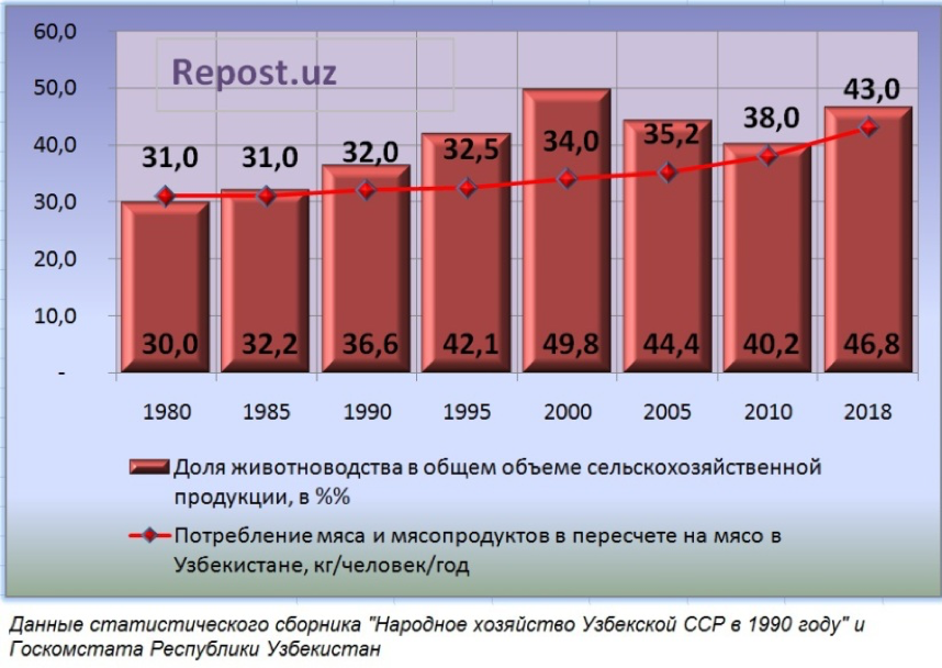 Поэтому, в деле обеспечения рынка мясом, делать упор на развитие дехканских хозяйств не нужно: их потенциал исчерпал себя. Необходимо развивать животноводческие фермы и комплексы, создавать прочную и доступную кормовую базу.