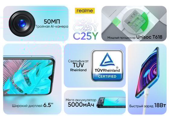 По словам производителя – «C25Y is King of the C series», что в переводе означает «Король С-линейки». Серия C от realme является синонимом лучшего качества в своем классе, который получил сертификат высокой надежности TUV Rheinland.