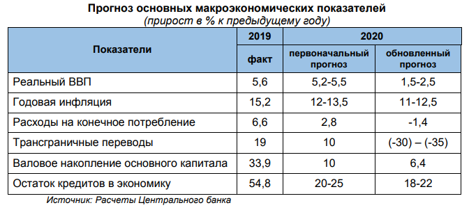 Центральный банк Узбекистана пересмотрел прогноз основных макроэкономических показателей. Ожидается замедление темпов роста ВВП до 1,5-2,5%, вместо планируемых 5,2-5,5%, следует из отчета регулятора.