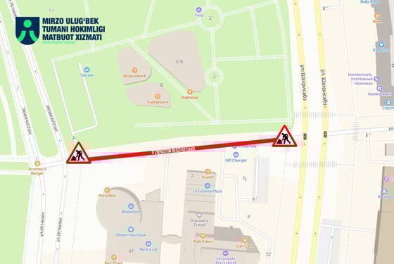Как отметили в администрации, с 14:00 18 октября до 20 декабря участок улицы Узбекистон овози от пересечения с улицей Шахрисабз до улицы Истиклол будет закрыт для движения.