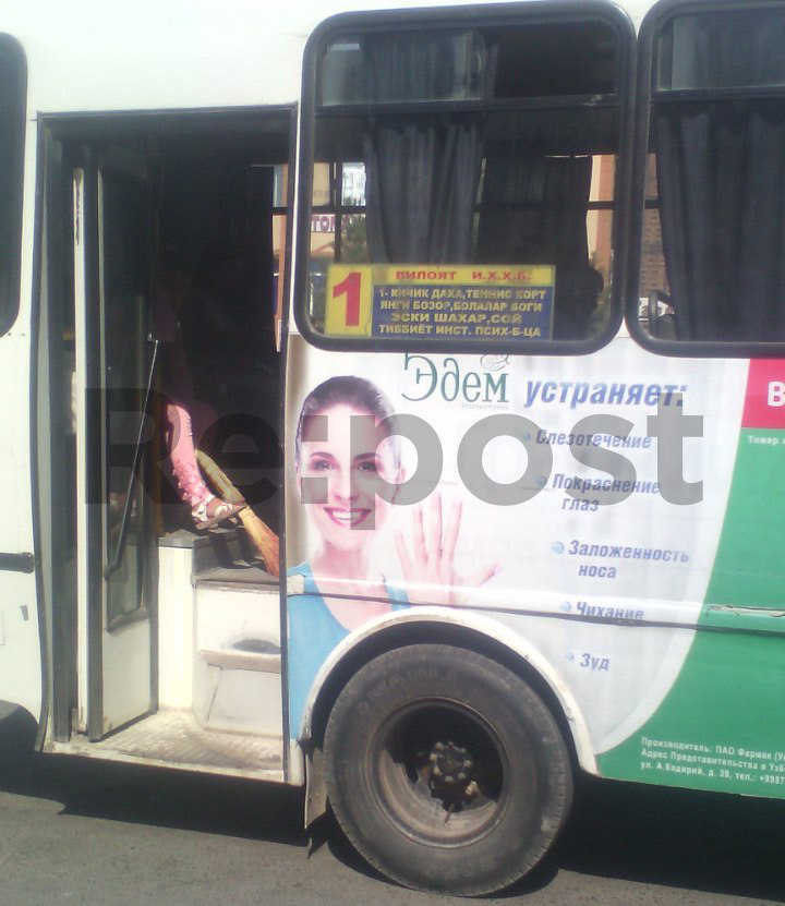 По сведениям нашего корреспондента, водитель одного из автобусов в городе Андижан перевозит людей с открытым газовым баллоном, который расположен прямо в салоне.