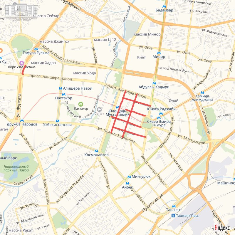 4) Улица Бухоро – от ул. Буюк Турон до ул. Тараса Шевченко;