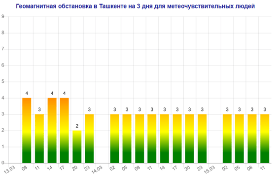 Сегодня (13 марта) в Ташкенте наблюдается магнитная буря мощностью четыре балла, следует из данных сервиса Meteonova.