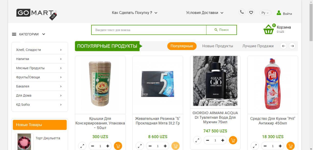 Где приобрести продукты питания с доставкой на дом? Несколько десятилетий назад, такой вопрос показался бы странным, но сейчас, с высокими темпами роста технологий, которые меняют нашу жизнь, он является весьма актуальным. Для большинства людей, ценящих свое время, покупка товаров в интернете является обыденным делом. GoMart.Uz – интернет магазин продуктов питания и товаров для дома стал для жителей Ташкента отличным сервисом в приобретении и доставки товаров.