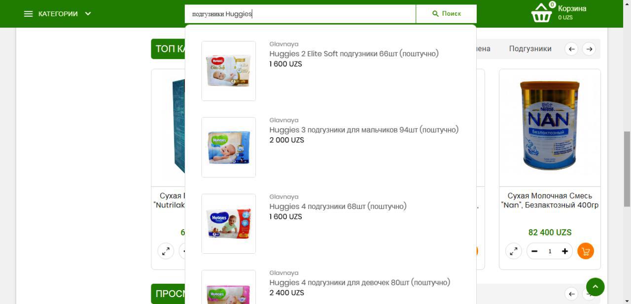 Наш онлайн сервис предоставляет легкую процедуру оформления заказа. У нас представлено более 3500 наименований товаров, которые расположены по категориям, таким как мясные продукты, фрукты, овощи, бакалея, товары для дома и другие. Вам нужно выбрать нужный товар, нажать кнопку «в корзину». Если из-за широкого ассортимента товаров, вы не можете найти нужный продукт, то можно найти его при помощи строки поиска или фильтра. В строке поиска нужно вписать название продукции, после чего он выдаст вам результаты.