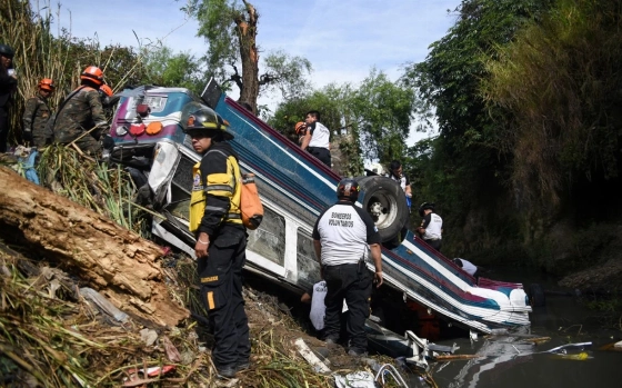 Водитель автобуса потерял управление по пути в столицу Гватемалы. Он выехал на встречную полосу, где столкнулся с шестью автомобилями и упал в овраг.