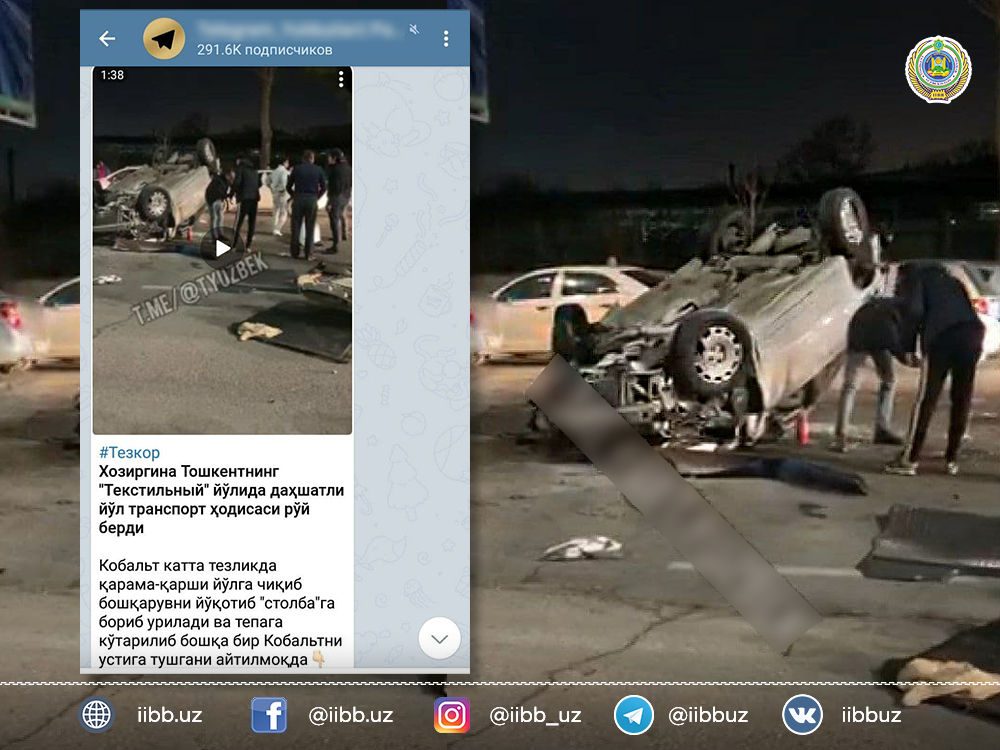 По полученным данным, 7 марта примерно в 23:55 на улице Шоты Руставели в Яккасарайском районе гражданин О.Б. 27 лет, водитель одного из автомобилей марки Cobalt превысил скорость и потерял управление, после чего врезался в столб освещения. Автомобиль вылетел на встречную полосу и врезался в другой автомобиль Cobalt, водителем которого был А.Ш. 65 лет.