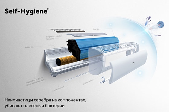Self-Clean – это инновационная технология очистки внутреннего блока, предполагает удаление микробов, бактерий и других вредных микроорганизмов с помощью процесса терморасширения, а Self-Clean наружного блока автоматически очищает теплообменник;