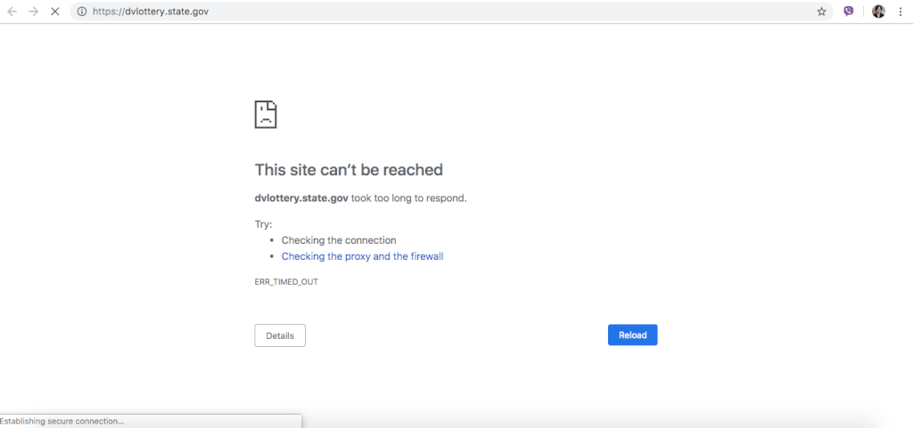 7 мая на сайте dvlottery.state.gov были опубликованы результаты программы грин-карт, но из-за большой нагрузки сайт завис и вместо результатов показывал сообщение о том, что «This site can’t be reached».
