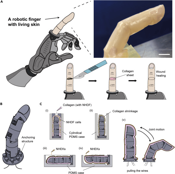 Ученые из Токийского университета разработали метод покрытия пальца робота живыми человеческими клетками.