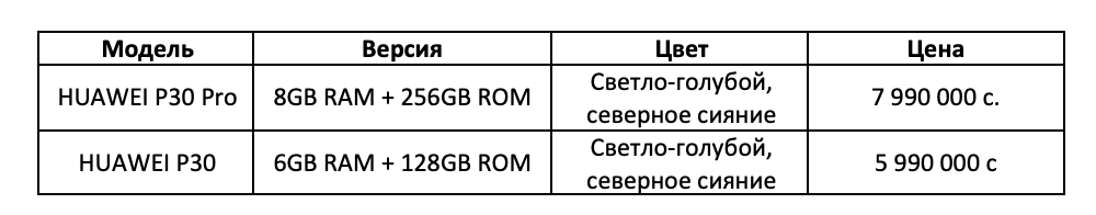 HUAWEI P30 и HUAWEI P30 Pro будут доступны в продаже в Узбекистане в начале мая по рекомендованным ценам:
