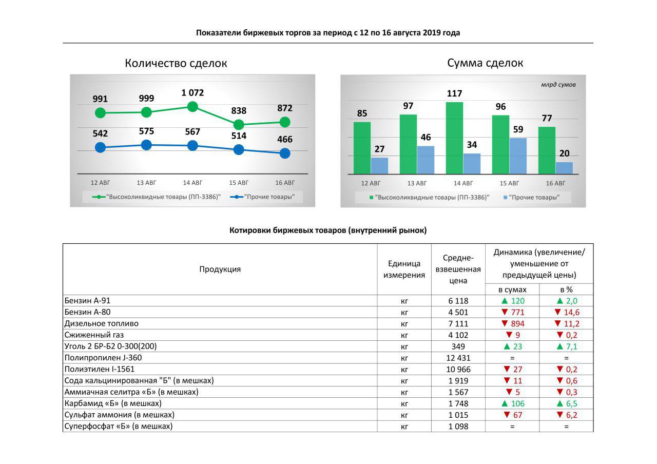 21 августа Антимонопольный комитет опубликовал итоги котировки биржевых товаров с 12 по 16 августа.