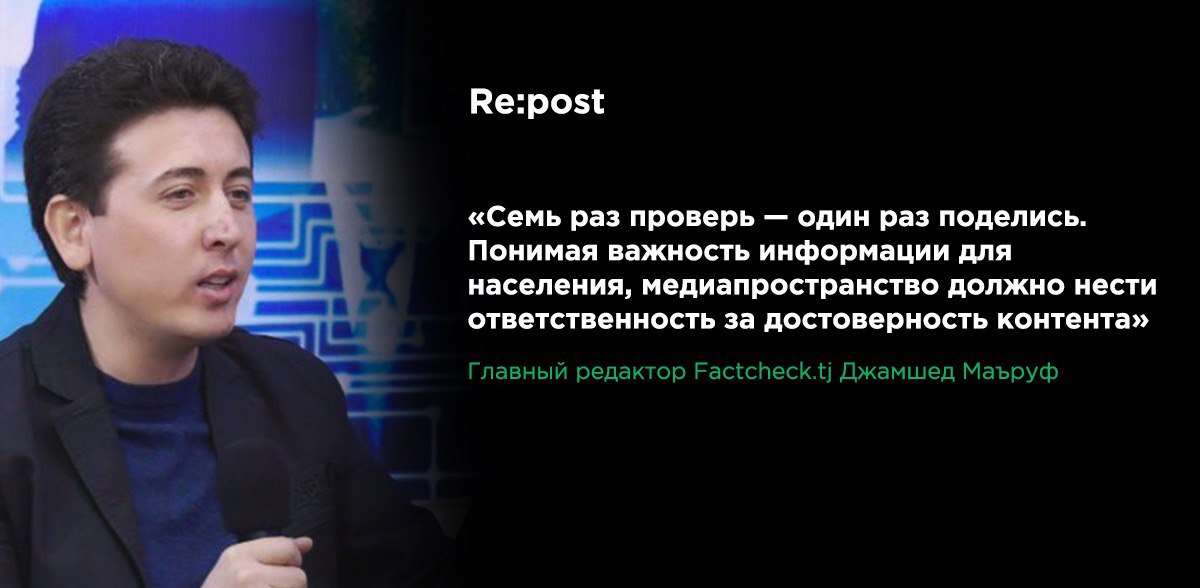 Главный редактор Factcheck.tj Джамшед Маъруф подчеркнул, что среди таджикского общества на проблему распространения дезинформации приходится 50 процентов. Наибольшая активность проявляется в социальных сетях.
