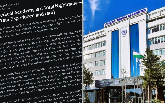Студент из Индии, обучающийся на первом курсе Ташкентской медицинской академии (ТМА), оставил на платформе Reddit эмоциональный пост в адрес узбекского вуза. Он назвал академию «настоящим кошмаром» и призвал не приезжать туда.
