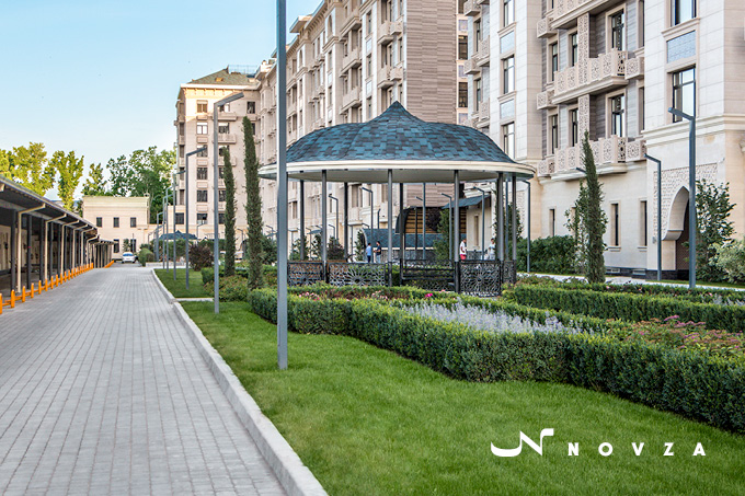 Для удобства жителей во дворе находятся беседки в восточном стиле, искусственные водоемы и озеленение, дарящие прохладу, места для прогулок и интерактивные детские площадки.