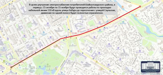 Как уточняется, специалисты будут проводить работы по прокладке подземных кабельных сетей высоковольтной электропередачи 110 кВ на участке улицы Бабура от пересечения с улицей Шота Руставели до пересечения с улицей Сеул.