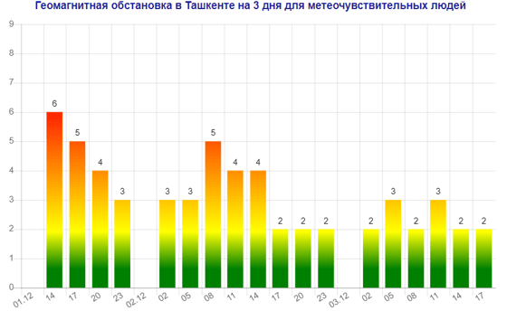 Завтра (2 декабря) в Ташкенте ожидается магнитная буря мощностью пять баллов, следует из данных сервиса Meteonova.