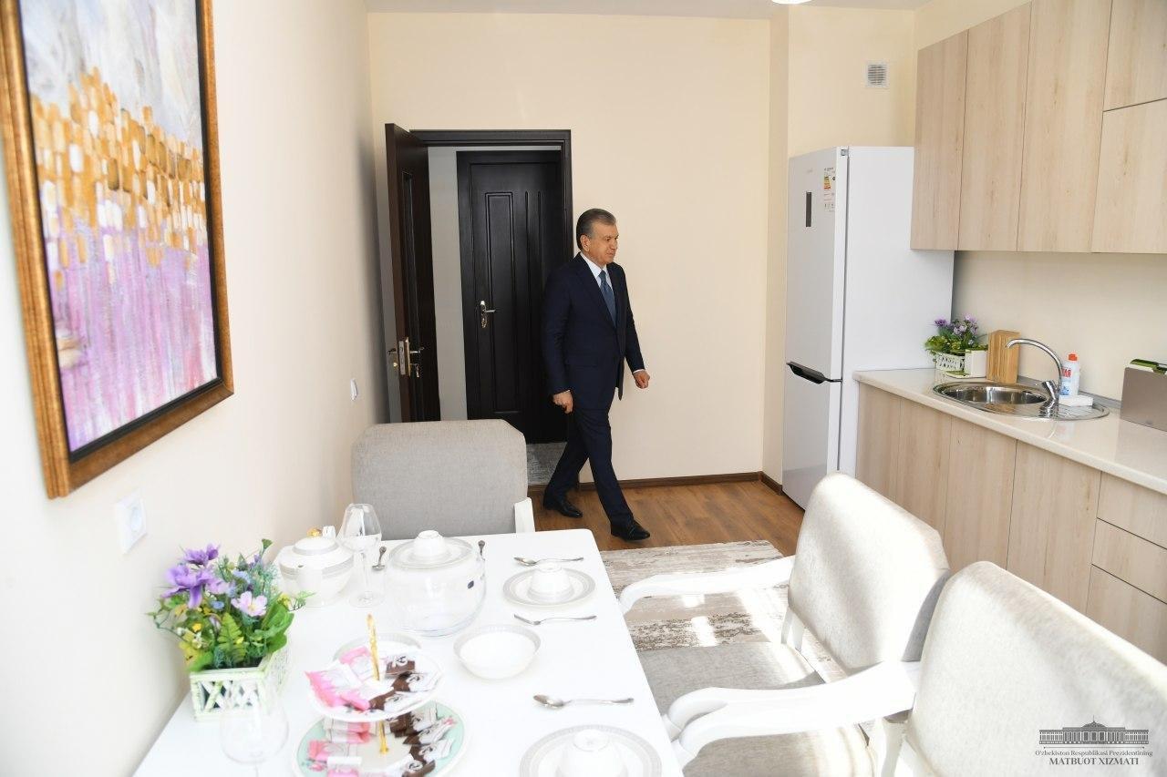 Мирзиёев рассказал о своей жизни в сельской местности и том, как 15 лет прожил в съёмной квартире. Глава государства лично ознакомился со всеми условиями и пообщался с жильцами нового городка.