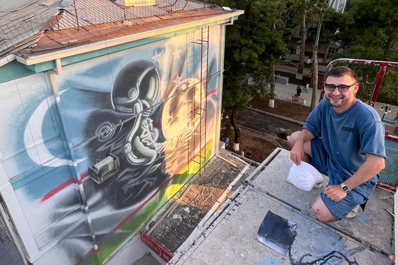 Примерно неделю назад, когда я заканчивал мурал с космонавтами на этом же здании по улице Гагарина, меня попросили помочь сохранить картину с изображением нашей чемпионки Оксаны Александровны Чусовитиной. Так как автор отказался восстановить повреждения и проконсультировать меня, как лучше исправить картину, чтобы её сохранили, я взялся за восстановление поврежденных частей изображения, — отметил Хасан Майчеев.