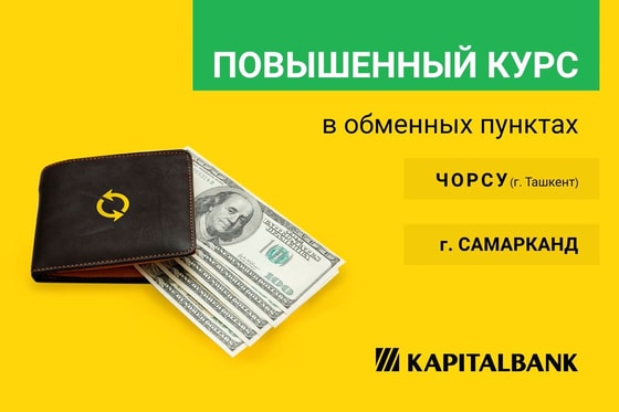 На сегодняшний день в обменных пунктах АКБ «Капиталбанк» курс покупки установлен в размере 10710 сум за 1 доллар США, в то время как для филиала Чорсу (г. Ташкент) и Самаркандского филиала установлены повышенные индивидуальные курсы покупки долларов США у физических лиц в размере 10720 сум за 1 доллар США (данные на 03.11.2021 г.)
