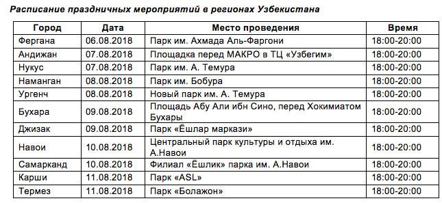 В этом году традиционно компания КНАУФ организует празднования в честь Дня работников сферы строительства во всех регионах Узбекистана. Развлекательные мероприятия пройдут в двенадцати городах республики с 6 по 12 августа 2018 года.