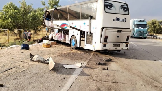 Авария случилась 7 августа около 18:00 на 720-м км вышеназванной трассы. Автобус Van Hool, у которого взорвалось правое колесо, сбил металлическое ограждение. После этого он врезался в прицеп грузового автомобиля МАN, ехавшего по встречной полосе.