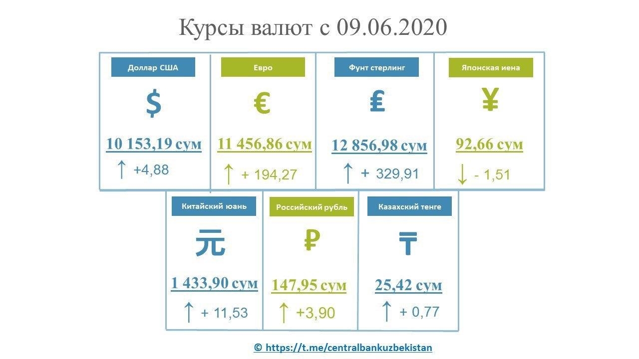 Центральный банк Узбекистана установил новые курсы иностранных валют по отношению к суму. Курс доллара составил 10 153,19 сумов (4,88), а евро – 11 566,86 сумов (194,27).