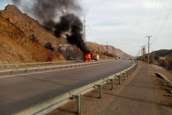 На перевале Камчик дотла сгорел грузовик, сообщает пресс-служба Министерства по чрезвычайным ситуациям.