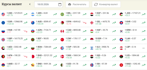 Курс доллара составил 12 129,01 сумов (+37,79), фунта 16 175,25 сумов (+156,8), евро 13 968,98 сумов (+124,53), а рубля 147,99 сумов (-1,17).