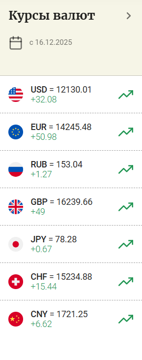 Курс доллара составил 12 130,01 сумов (+32,08), фунта 16 239,66 сумов (+49), евро 14 245,48 сумов (+50,98), а рубля 153,04 сумов (+1,27).