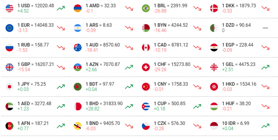 Курс доллара составил 12 020,48 сумов (+4,52), фунта 16 207,21 сумов (-15,54), евро 14 048,33 сумов (-3,13), а рубля 158,77 сумов (-1,53).