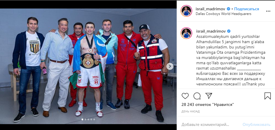 Напомним, что Исраил Мадримов в октябре досрочно остановил в 5-ом раунде опытного мексиканца Алехандро Барреру (29-6-0, 18 KO), нанеся ему второе досрочное поражение в карьере. Первым был действующий чемпион WBC/IBF в полусреднем весе (до 66.7 кг), американец Эррол Спенс-младший.