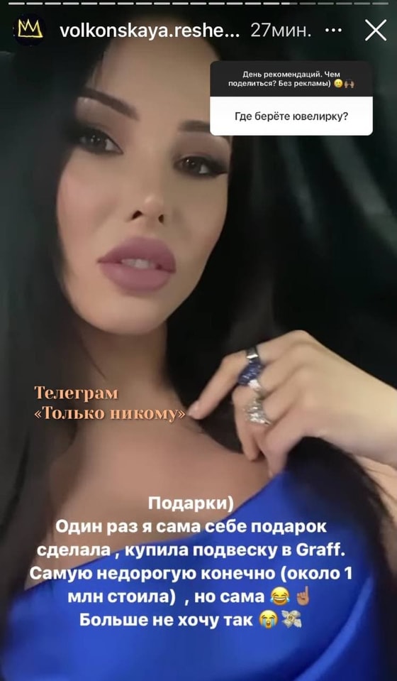 Так, Решетова намекнула, что не хочет быть сильной и независимой, а намного приятнее получать такие дорогие украшения в подарок.