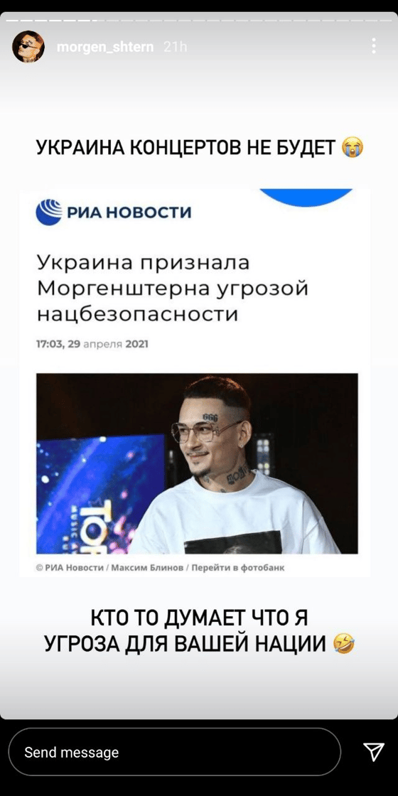 В следующем stories, нецензурно выражаясь, Моргенштерн выразил надежду, что сможет провести концерт в Украине.