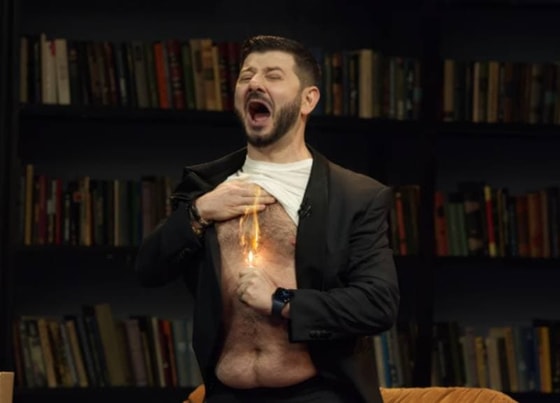 Резиденты начали предлагать разные варианты, однако неожиданно, комик поднял свою футболку и поджег волосы на груди. К счастью зрителей, огонь быстро погас и Галустян спокойно сел обратно.