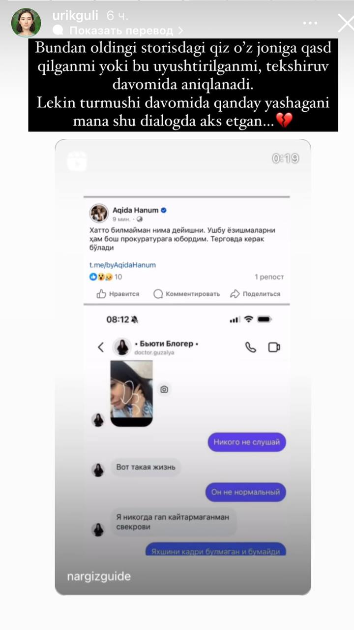 Данный инцидент произошёл в ночь с 11 на 12 декабря. Aqida Hanum, одна из подруг покойной, опубликовала скриншоты переписок, где погибшая делилась размышлениями о том, что «думаю, умру, легче будет», а также упоминала о сложных отношениях с мужем и свекровью.