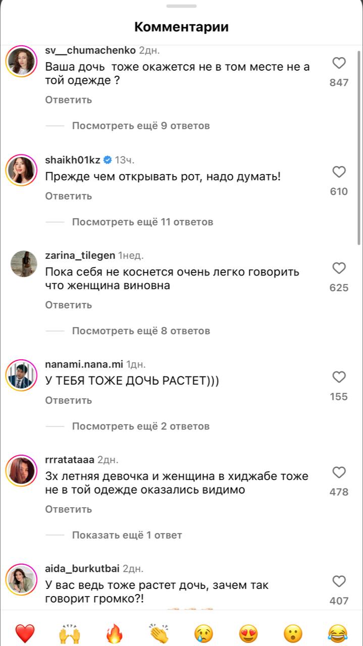 «Ваша дочь тоже окажется не в том месте и не в той одежде?», «Пока себя не коснется, легко говорить», «У тебя тоже дочь растет!», – написали в комментариях.