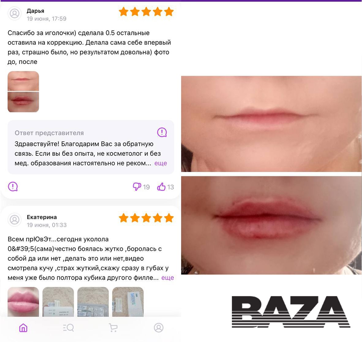К слову, многие из них не только поделились отзывами, но и фотографиями своих работ. Продавцы товара уверяют, что это безопасно и дают рекомендации, которых необходимо придерживаться после инъекций, напоминая о санитарных правилах.