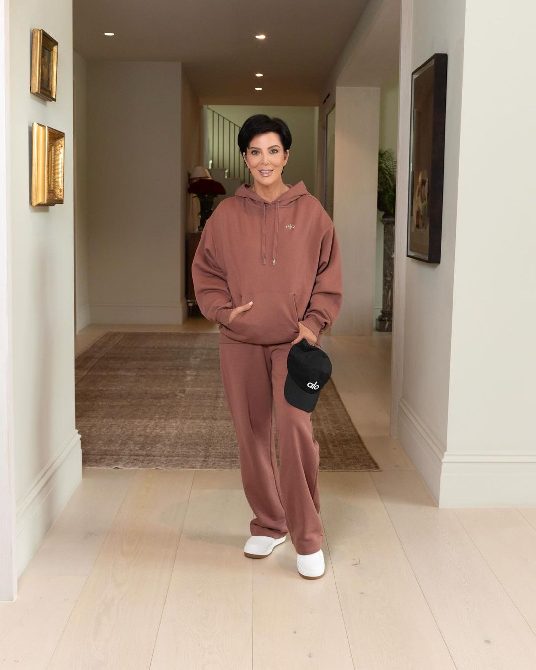 Крис выложила фото в спортивном костюме с собакой на поводке. На втором кадре знаменитость нарядилась в голубой тренировочный комплект, а на третьей фотографии она была одета в коричневый спортивный костюм. Пост должен был рекламировать одежду, но все внимание подписчиков привлекло лицо Дженнер.