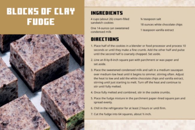 В Интернете появились снимки кулинарной книги от разработчиков популярной игры Minecraft. Теперь пользователи смогут приготовить блюда из игры.