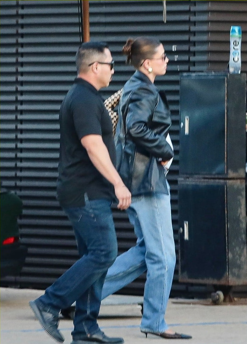 Папарацци Just Jared заметили 28-летнюю модель в Малибу, когда она направлялась на ужин в ресторан. Для своего выхода Хейли выбрала туфли на каблуках, джинсы, обтягивающую белую футболку и объемную черную кожаную куртку. Она дополнила свой образ светлой сумкой, массивными сережками и солнцезащитными очками.