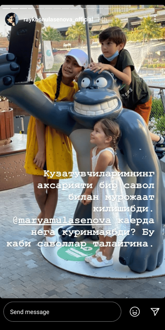 Недавно в своих stories актриса и ведущая Райхон Уласенова рассказала, где была ее младшая дочь Марьям Уласенова все это время.