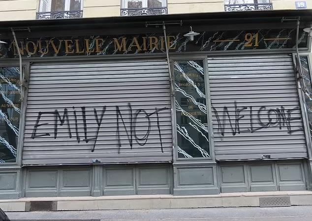 Так, например, на витрине модного магазина они успели написать «Эмили, отвали», «Южный Париж не твой». Также досталось и обувному магазину, который расположен на той же площади, что и дом Эмили.
