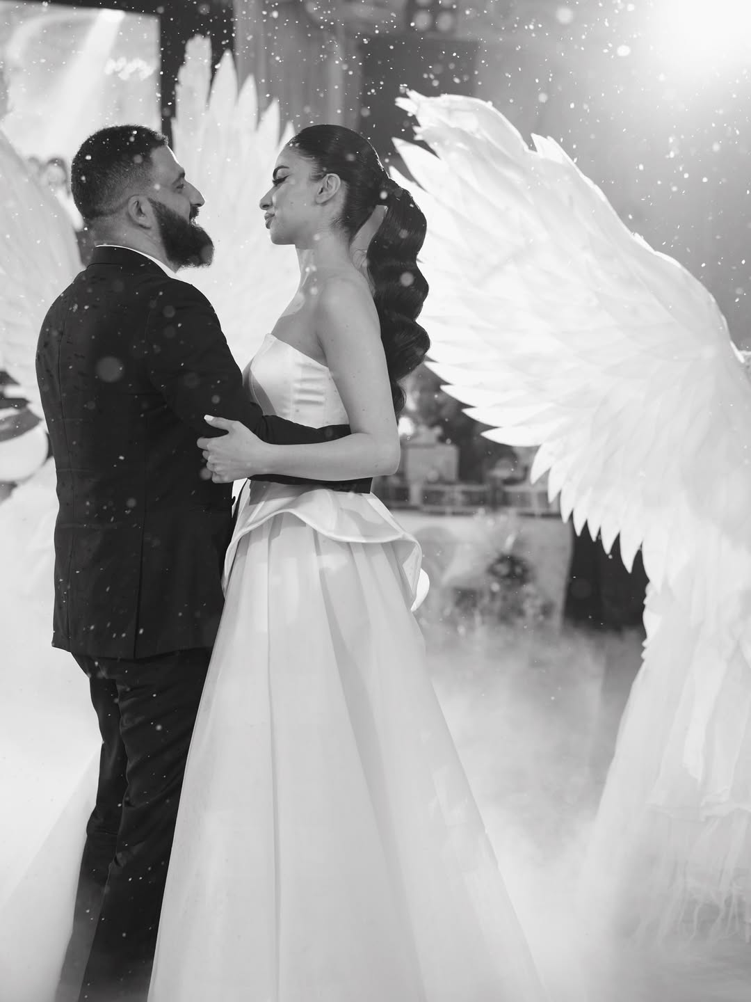 Комик Гурам Амарян женился на своей возлюбленной Эке. В соцсетях он поделился кадрами пышного торжества, на котором присутствовали десятки гостей. На одном из трогательных фото запечатлен первый медленный танец пары в окружении «ангелов». Эка выбрала элегантное белое платье с открытыми плечами, а Гурам — классический черный костюм.