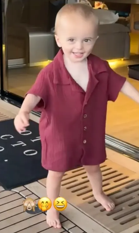 Знаменитость опубликовала в соцсетях видео, на котором ее малыш бегает по палубе без спасательного жилета.