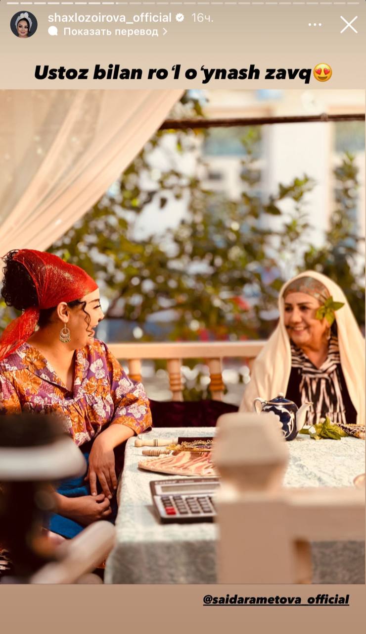 Артистка Шахло Зоирова опубликовала несколько кадров, рассказав, что она сыграет ту самую невестку Sotti. Талантливая актриса Саида Раметова исполнит роль Фарман Биби.
