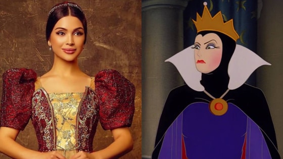 Артистка повторила сцену, когда Злая королева, смотря в зеркало задавалась вопросом: «Я ль на свете всех милее, всех румяней и белее?». Паризода решила сыграть сразу две роли: Злой королевы и самой Белоснежки.